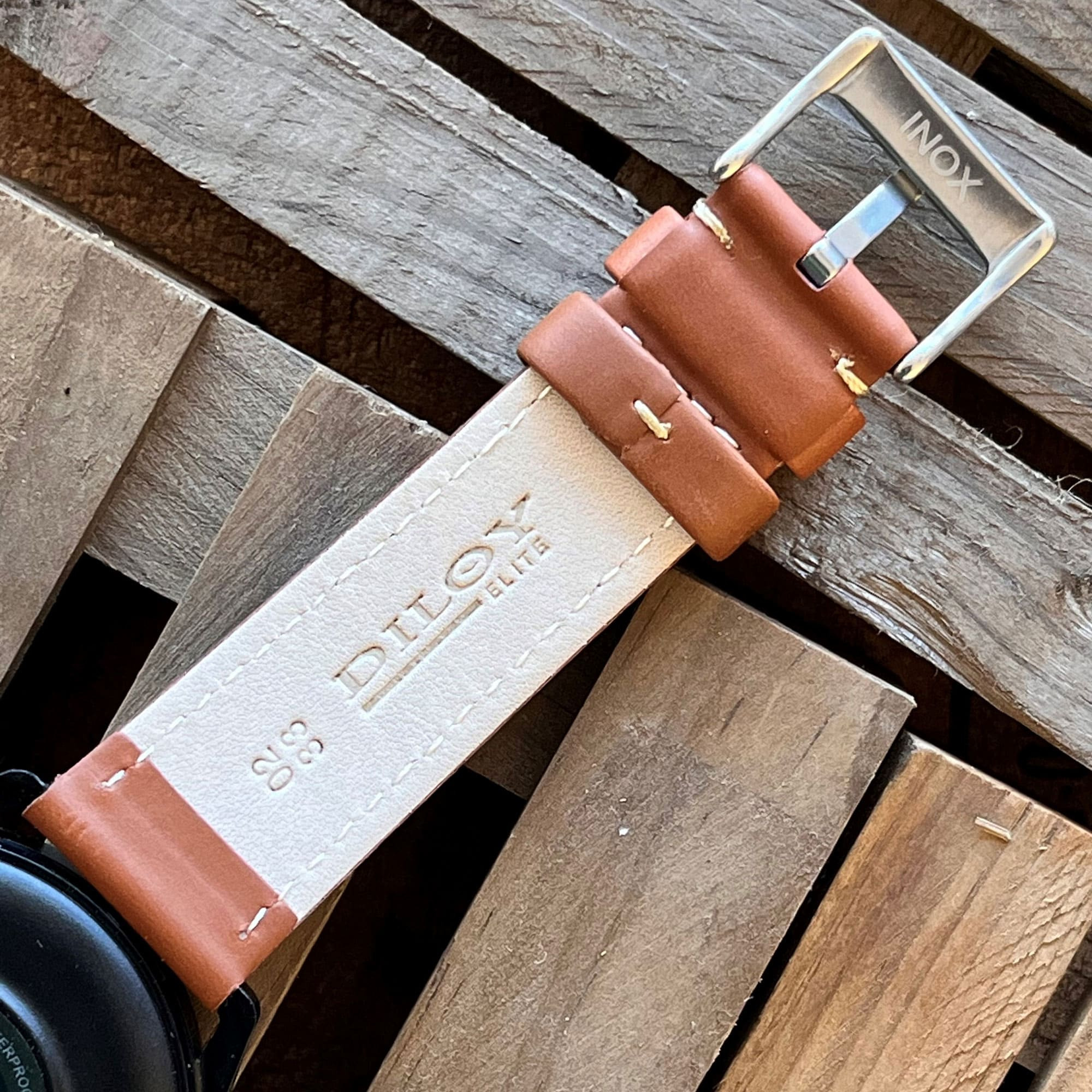 | Titulo_Corto | Correa para reloj - Correa de Piel engrasada con costura blanca, cuero premium - Diloy 377 |