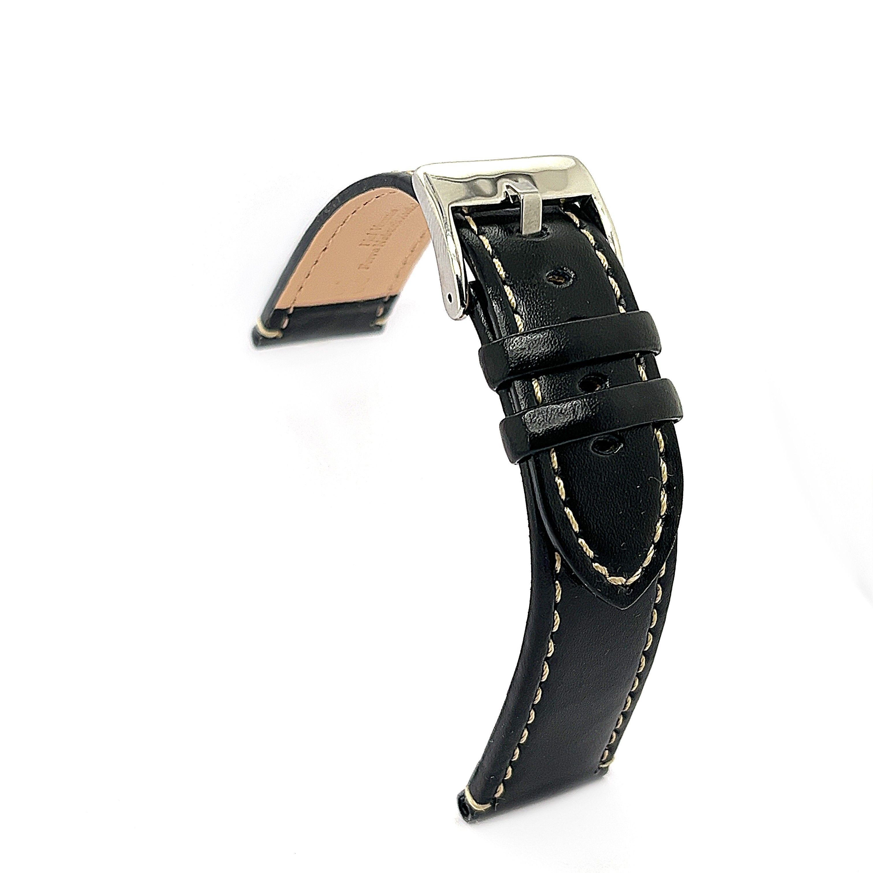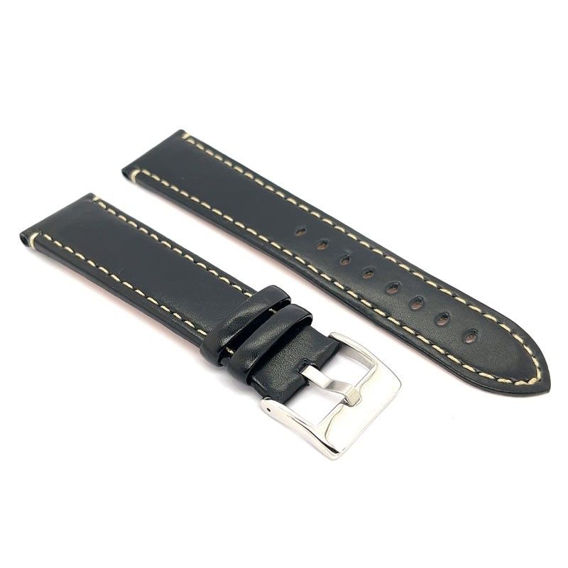 Correa de Reloj de Piel Vacuno cuero con costura blanca acabado liso con brillo 14mm 16mm 18mm 20mm 22mm 24mm Ref. 373