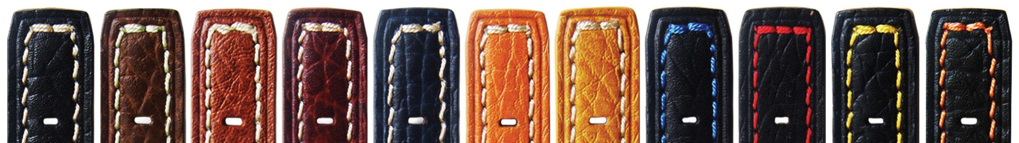 Usamos dos trabillas o pasadores vueltos hechos con el mismo cuero que la superficie de la correa, una fija y otra móvil. La trabilla móvil está reforzada por una costura en su parte posterior. Es común que las trabillas parezcan de diferente color que la correa. Esto es debido al comportamiento del cuero al someterlo a diferentes tensiones. Si dobla la correa verá cómo se aclara y adquiere un tono más similar al de la trabilla. El color de la correa tenderá a oscurecerse a media que vayan transcurriendo los días en su reloj.