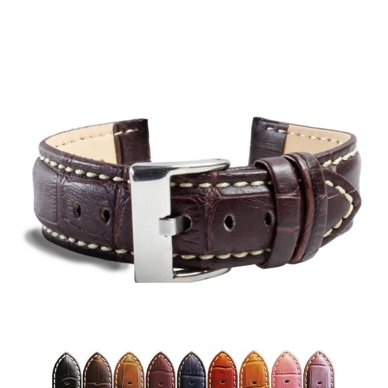 Correas de Reloj de Piel. Cuero Grabado Cocodrilo costura blanca 18mm 20mm 22mm 24mm 26mm 28mm 30mm. Ref 378