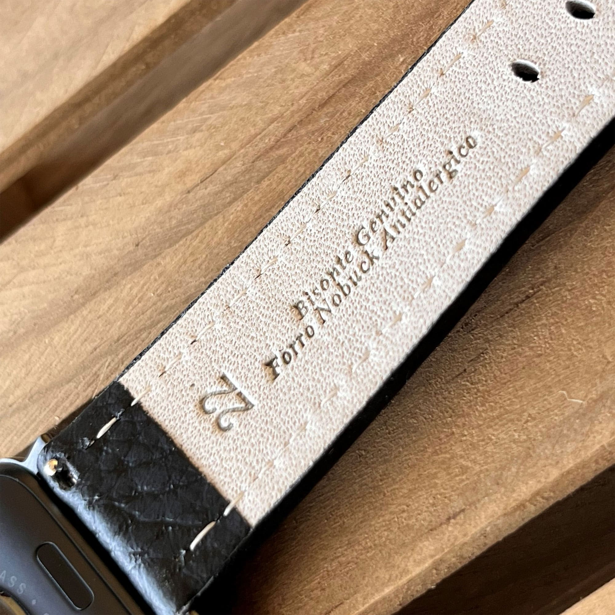 Correa de cuero vacuno con grabado bisonte y costura blanca. Estilo deportivo ideal para relojes robustos. Ver más en nuestra colección de correas deportivas.