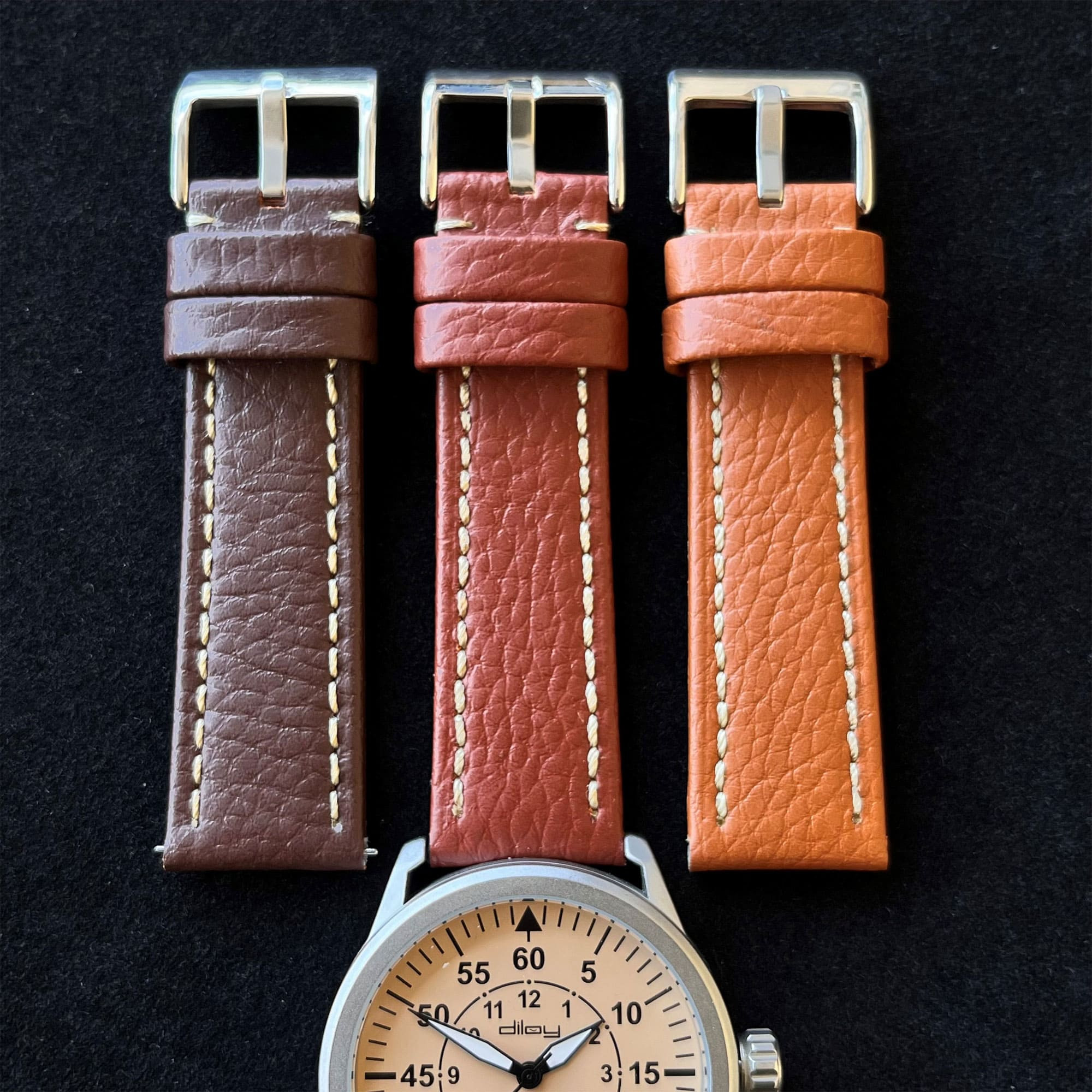 Correa de cuero vacuno con grabado bisonte y costura blanca – Estilo deportivo – Para reloj robusto – Tallas 18mm 20mm 22mm 24mm 26mm – Negra o marrón – Diloy 376