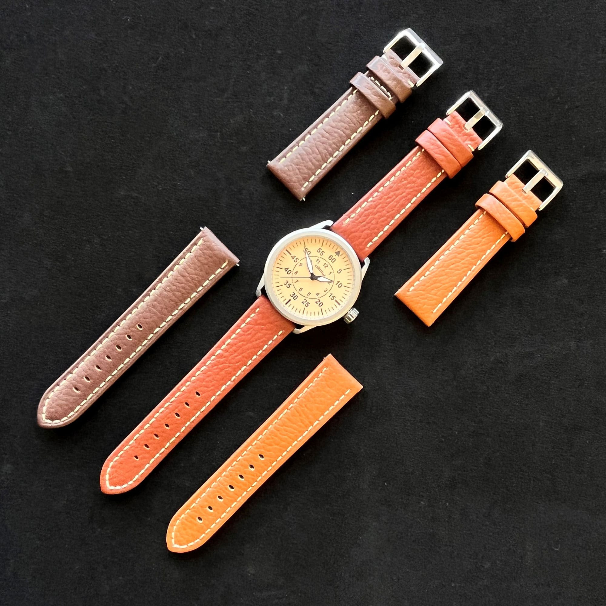 Visita nuestra colección de correas para reloj, explora nuestras correas deportivas, nuestras correas con costura blanca y correas de cuero grabado bisonte.