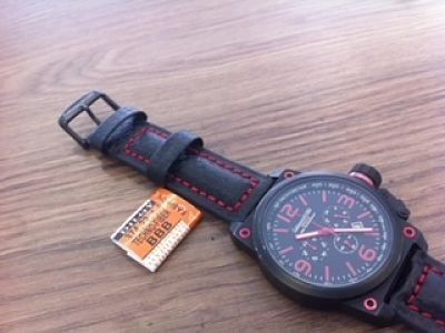 Tanto por la forma de la correa, como la hebilla de acero y el tipo de costuras, hacen que sea una correa de cuero para reloj especialmente adaptada para relojes deportivos.