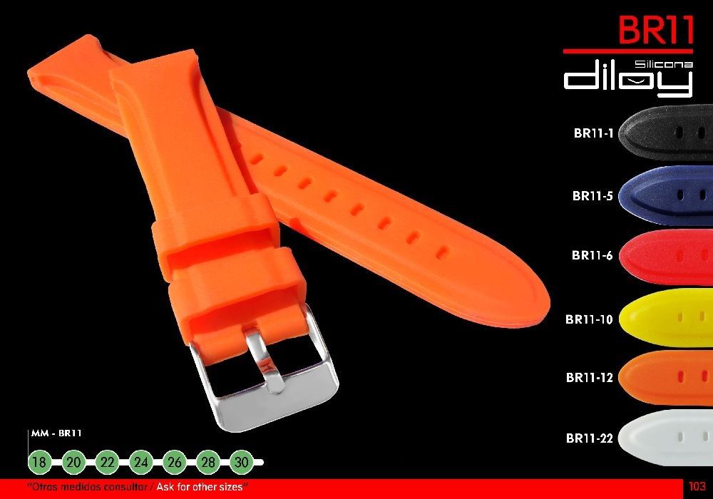 Correa de reloj Diloy modelo BR11 fabricada en silicona. Disponible en varias medidas y colores. Estándares de calidad europeos