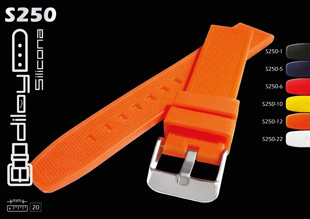 Correa de reloj Diloy modelo S250 fabricada en silicona. Disponible en varias medidas y colores. Estándares de calidad europeos