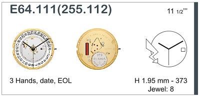 Máquina para reloj o movimiento para reloj ETA E64.111 (255.112).